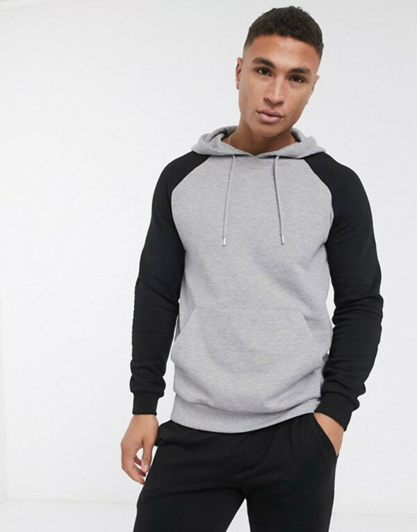 エイソス メンズ パーカー・スウェット アウター ASOS DESIGN hoodie in gray marl with black raglan sleeves Gray marl