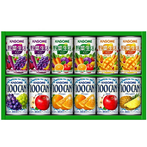 ●箱サイズ/199×340×58mm●商品内容/100CAN アップル 160g×2、100CAN オレンジ 160g×2、100CAN グレープ 160g×1、100CAN パインアップル 160g×1、野菜生活100 160g×2、野菜生活100 紫の野菜 160g×2、野菜生活100 黄の野菜 160g×2100%ジュースのベストセラー「KAGOME100CAN」と野菜&フルーツのおいしさが人気の「野菜生活100」の詰め合わせです。
